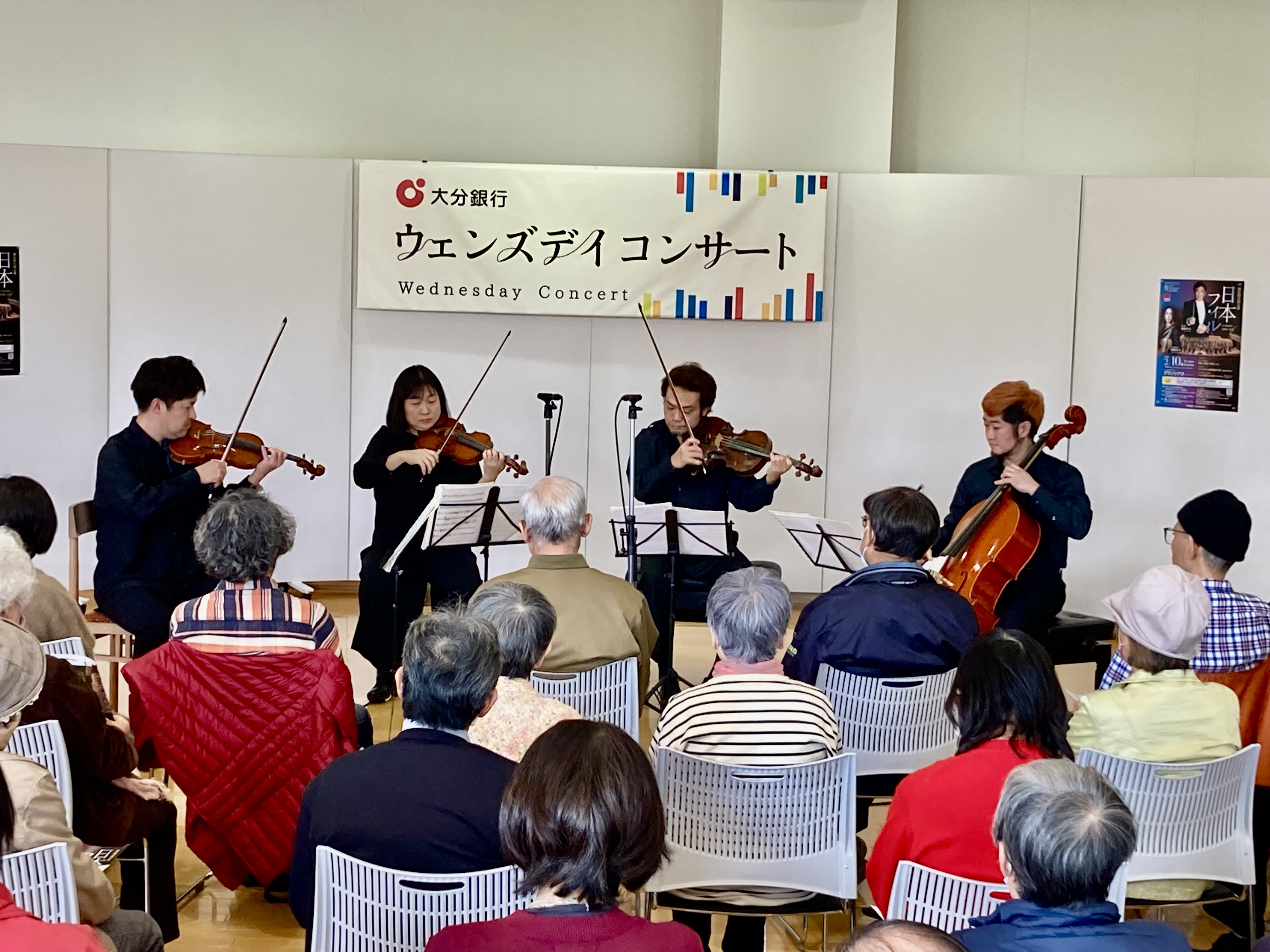 大分銀行宗麟館で、原則毎月第2、第3水曜日に「大分銀行ウェンズデイコンサート」を開催しています。地域の芸術・文化の育成を目的に1991年から始めたもので2022年5月で31年を迎えました。地元音楽家の皆さんを中心に、演奏の場を提供するとともに、ご来店のお客さまに素晴らしい音楽をお届けしています。どうぞお気軽にお立ち寄りください。