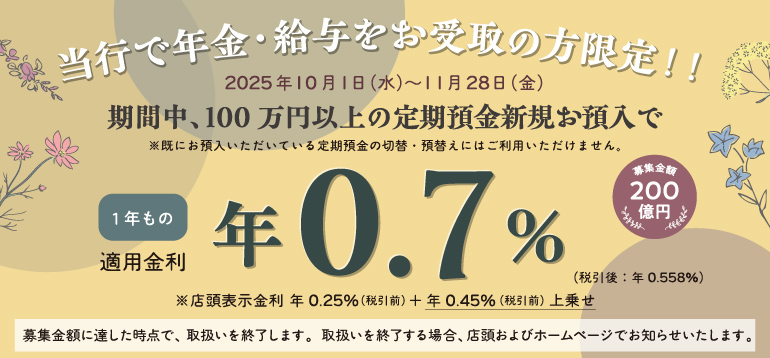 【年金・給与お受取の方限定】定期預金特別キャンペーン